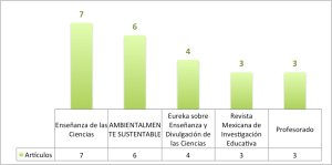 - Siguiendo análisis anteriores, los autores seleccionados han publicado solo el 16% de sus artículos entre las revistas Enseñanza de las Ciencias y Eureka sobre Enseñanza y Divulgación de las Ciencias.