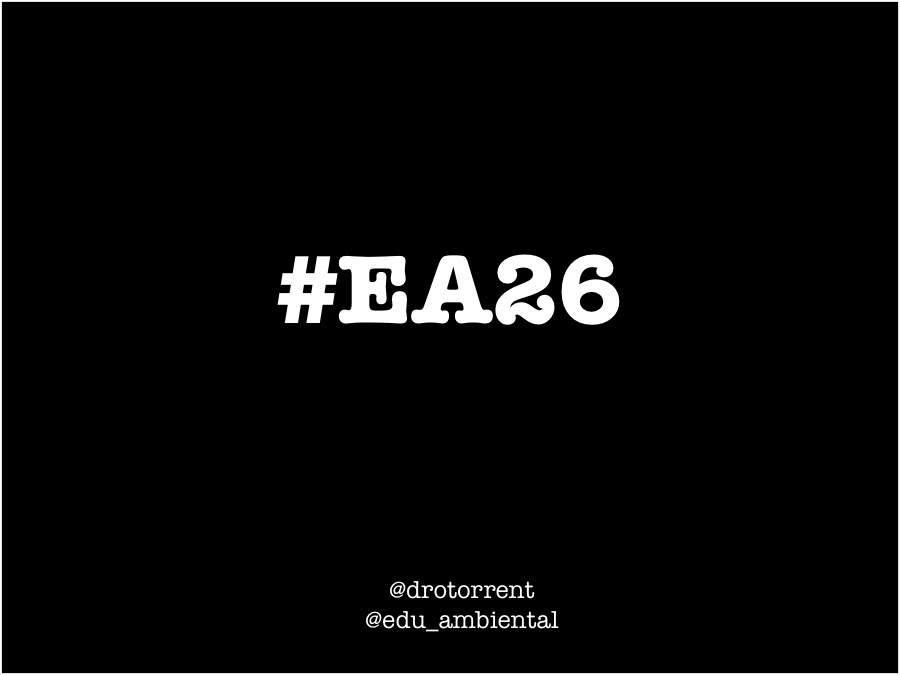 #EA26 es una quedada, a través de debates y encuentros, que pretende profundizar en la Educación Ambiental. Para ello, desde 2014, los días 26 de cada mes se plantea un tema sobre el que reflexionar colectivamente y plantear, como recomienda el Libro Blanco de la Educación Ambiental: “Promover la acción pro-ambiental entre personas y grupos sociales; una acción informada y decidida a favor del entorno y hacia una sociedad sostenible, realizada en el contexto vital de la ciudadanía: hogar, trabajo, escuela, ocio y comunidad.”