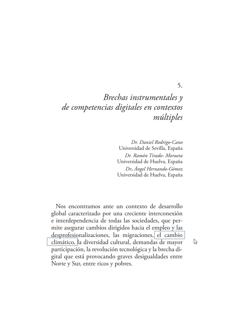 Rodrigo-Cano, Daniel; Tirado-Morueta, Ramón & Hernando-Gómez, Ángel (2018). Brechas instrumentales y de competencias digitales en contextos múltiples. En Ignacio Aguaded Luis Romero-Rodríguez (Eds). Competencia mediática en medios digitales emergentes. (113-131) Comunicación Social.
