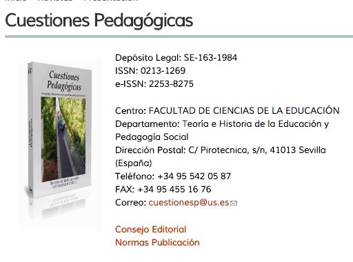 Indexada en: IRESIE, Latindex, DOAJ, Academia Journals Database, OALib, Universia, Sherpa-Romero, CrossRef, Université de Toulouse Le Mirail, Erasmus, Urkund, DOI.